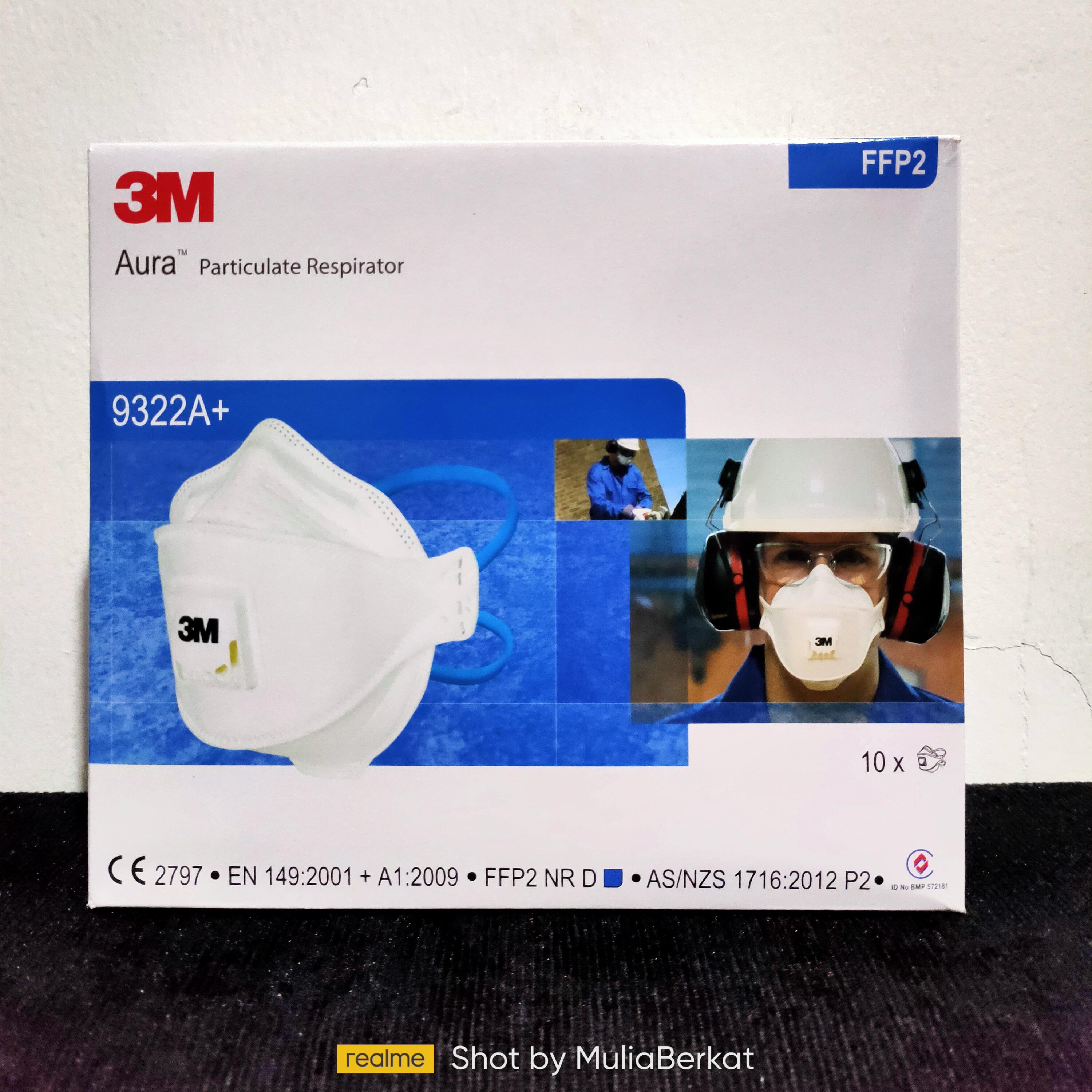 Masker Aura 3M tipe 9322A+ dengan katup (valve). Desain 3 panel lipat yang ergonomis, memberikan kenyamanan ekstra saat digunakan dalam waktu lama.